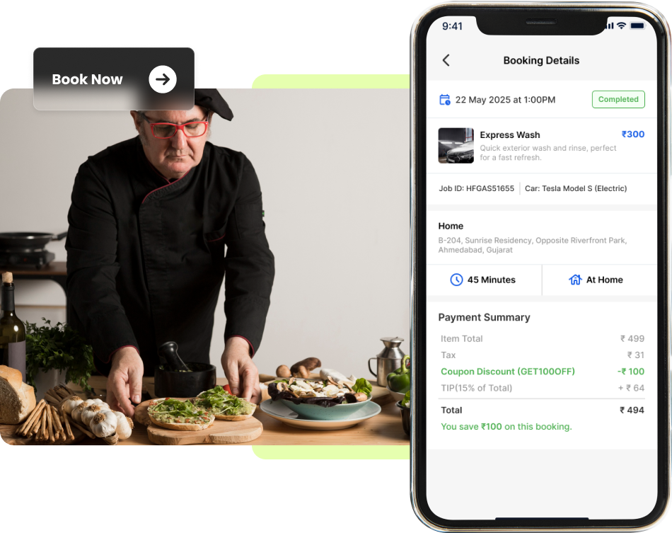 The all-in-one personal chef and meal prep services booking software for your business helps you attract more clients, manage services seamlessly, get paid promptly, and digitize operations for scalable growth. It's the ideal SaaS personal chef software for modern culinary entrepreneurs.